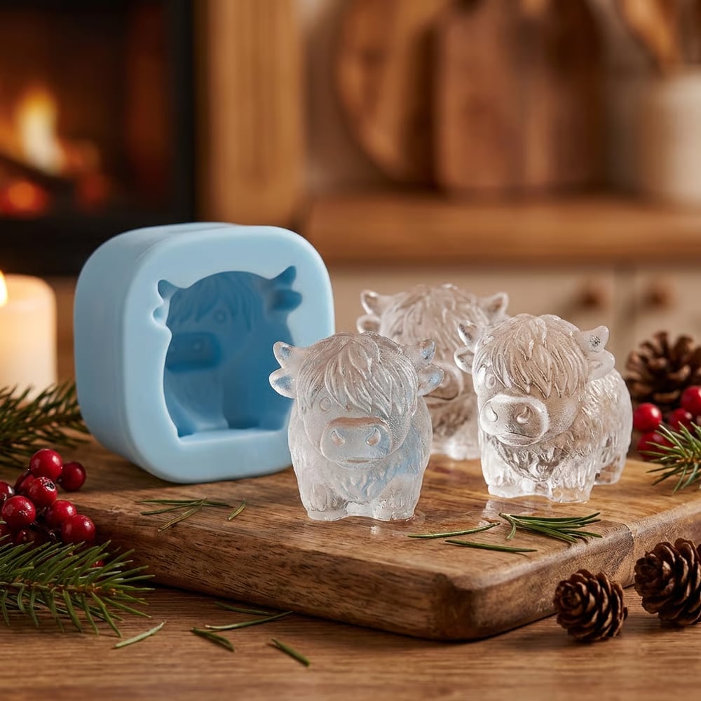 Adorable 3D Highland cow-shaped ice cubes that charm at first glance – and make every sip feel special.