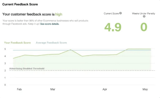 Our Facebook Official Customer Feedback Score Has Reached 4.9 out of 5. The score is better than 98% of other Ecommerce businesses who sell products through Facebook ads. We take very seriously our product quality and customer service.